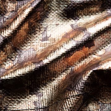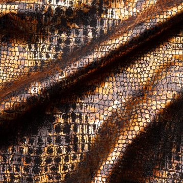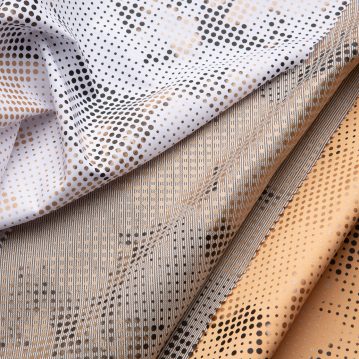 Bu baskı tekniğiyle, üzerinde boya ve aliminyum metalize kaplı folyo, yardımcı maddeler, desen kalıbı ve sıcak silindirlerle kumaşa aktarılır.